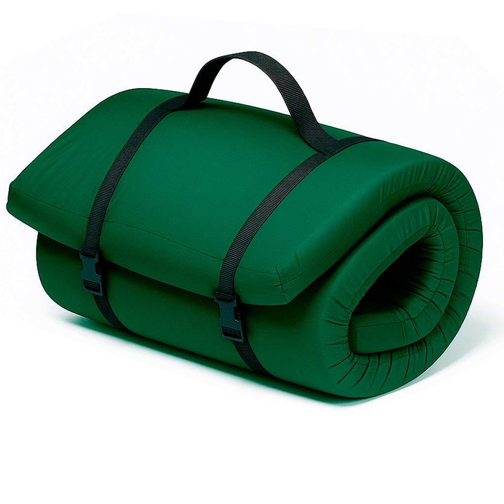 - В армійському матраці використовується водонепроникна тканина з поліуретановим просоченням, яке надійно захищає наповнювач від вологи та бруду. Цей матеріал відрізняється високою міцністю, стійкістю до розривів та стирання, що особливо важливо при інтенсивній експлуатації.